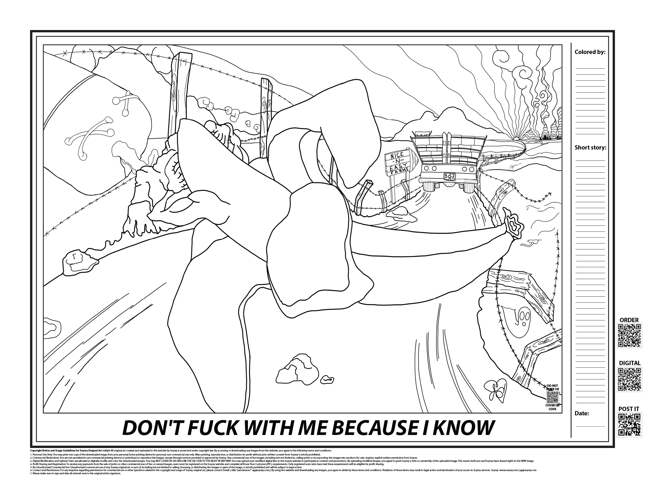 In this illustration, “Don’t FUCK with me because I know”, a banana is chilling on the golden road to the “Nice N Easy Farms”. He knows that not all that shines is gold, so he has jumped off the wagon and decided to take life on. DOWNLOAD THE FREE FILE HERE.